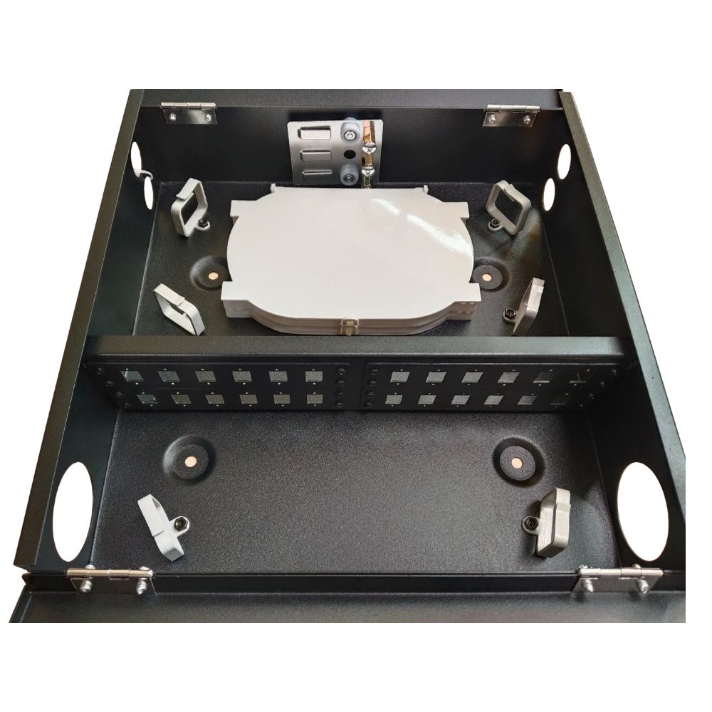 The Gtlan 35GTRM24SC Fiber Optic Wall Splitter is a robust and efficient solution for telecommunications installations that require orderly and secure cable management. Designed to accommodate up to 24 adapters (SC simplex, LC duplex or MPO-SC), it features a cold-rolled SPPC steel structure, ensuring durability and strength.