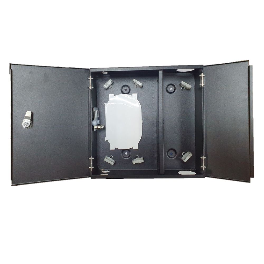 Fiber optic wall splitter with capacity for 24 SC, LC DX or MPO-SC adapters. Made of high quality SPPC steel, with key lock, 2 trays and cable organizer. Ideal for professional telecommunications installations.