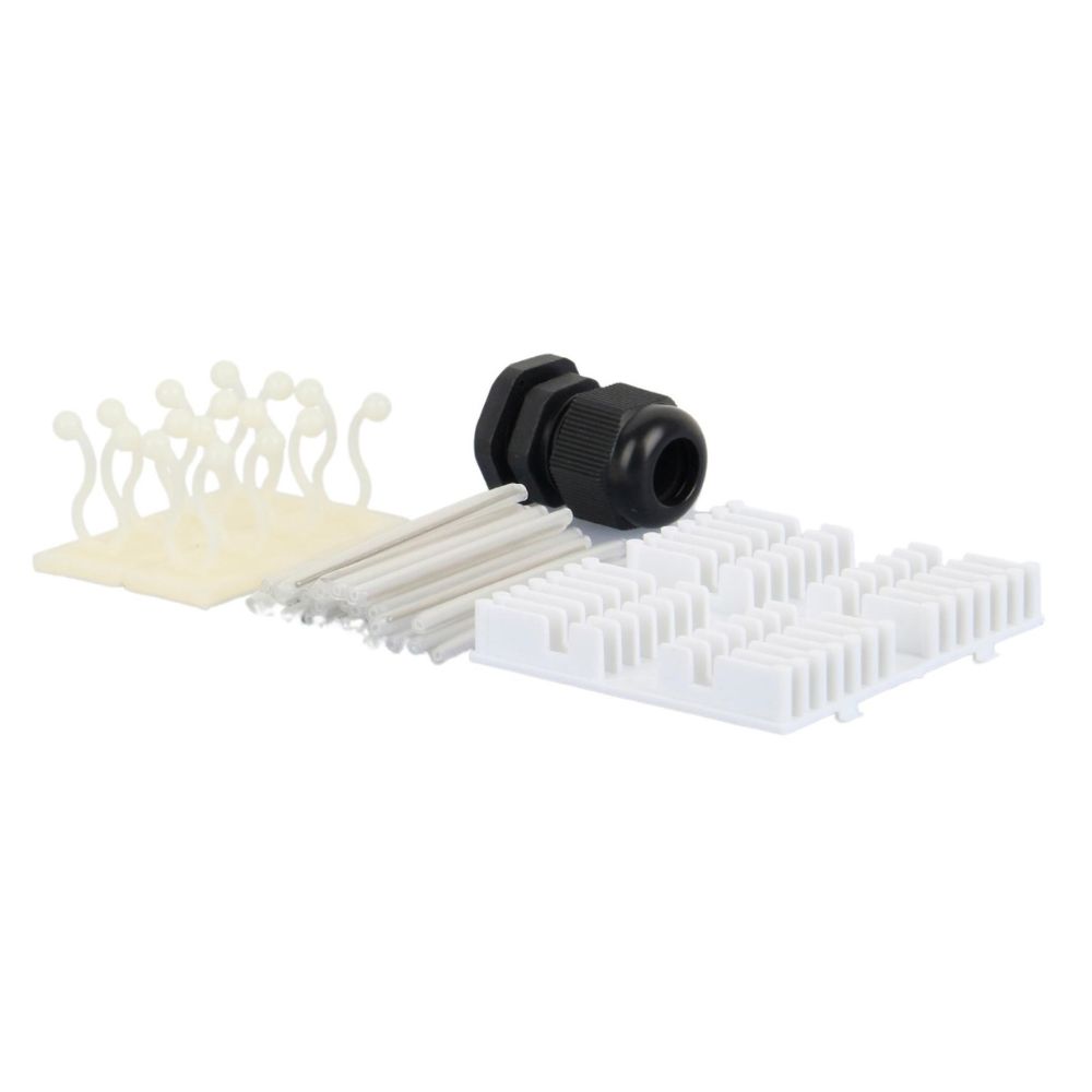 Contiene | 24 thermo retractable. 8 rings. 1 cable gland. 1 support for 12 fusions. |