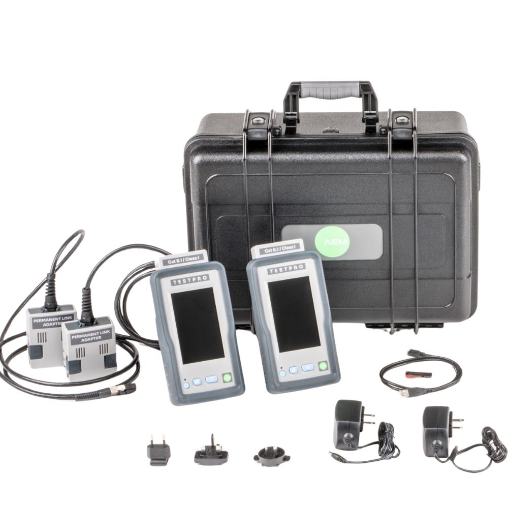 El Kit TESTPRO-K50E de AEM es una solución avanzada para la certificación profesional de enlaces de cobre en infraestructuras de red. Este kit incluye el equipo TestPro CV100, un dispositivo de última generación que permite realizar pruebas de certificación de manera rápida, precisa y sencilla, cumpliendo con los principales estándares internacionales de cableado estructurado (como TIA/EIA y ISO/IEC).